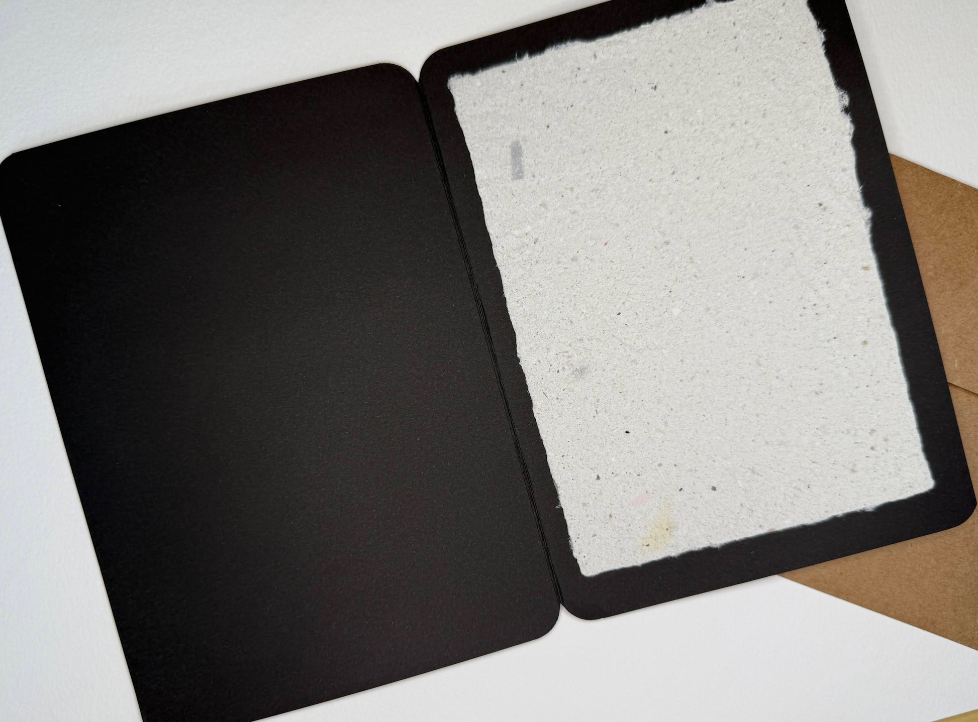 Bright, bold, and full of life—this original watercolor card features a vibrant coneflower that pops beautifully against rich black card stock. Inside, the card is lined with handmade paper crafted from recycled scraps, adding both texture and sustainability to your message.